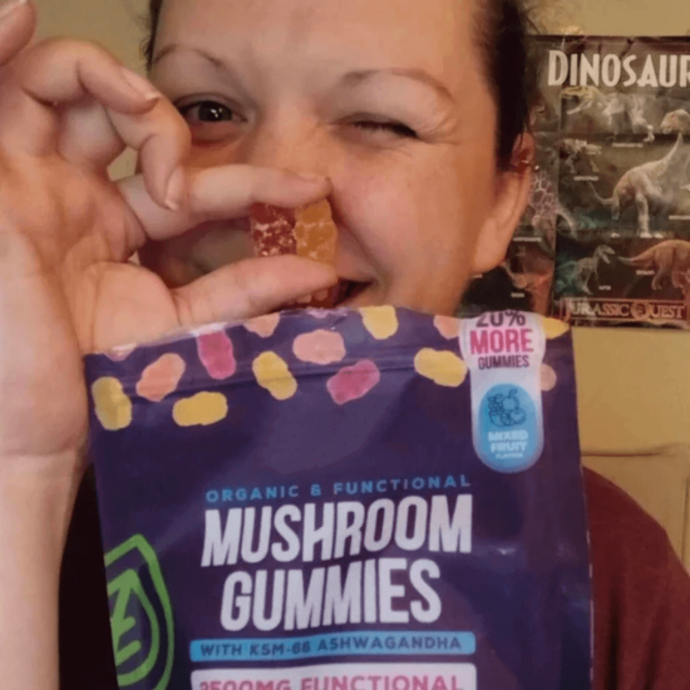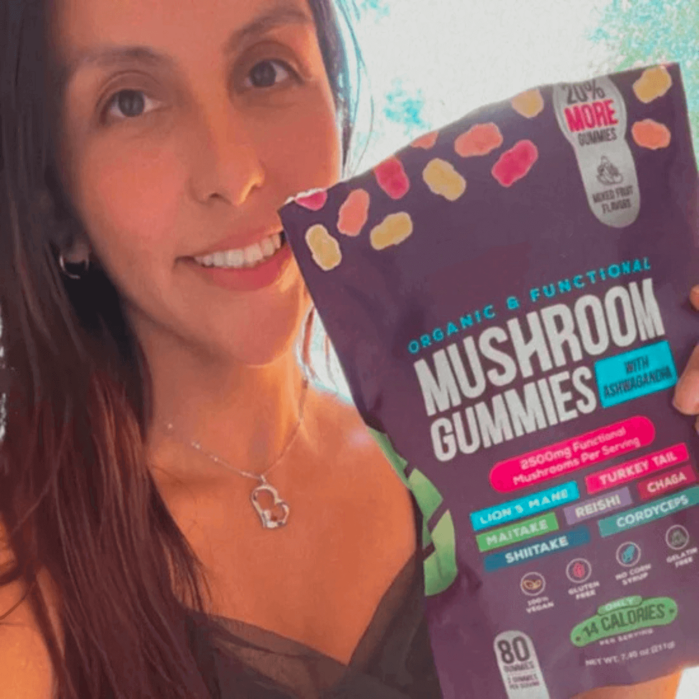 say they feel less stressed and more focused throughout the day after adding the mushroom and ashwagandha gummies to their routine.