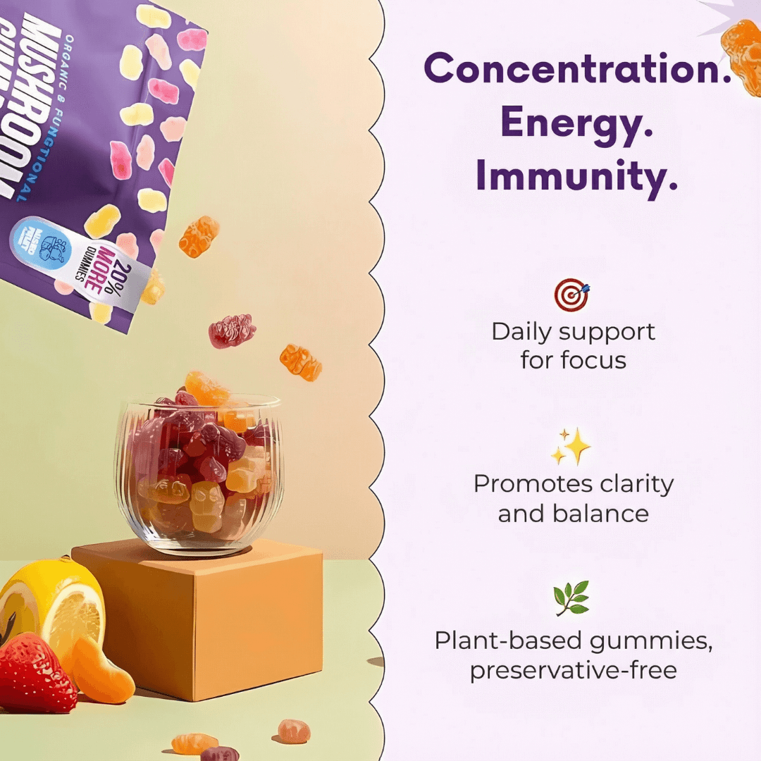 Enriched with 7 powerful mushrooms and ashwagandha, these gummies help eliminate mental fog so you can finally stay focused, stay on track, and take action.